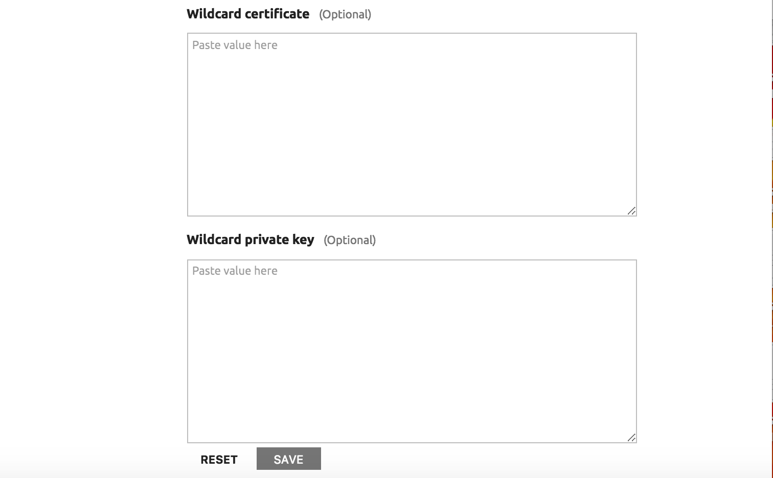 *.servername.domain.tld, filenamewildcard.key. An SSL private key is not necessary if the existing SSL certificate has a Subject Alternative Name for the wildcard domain. If you’re not sure, ask your network administrator.