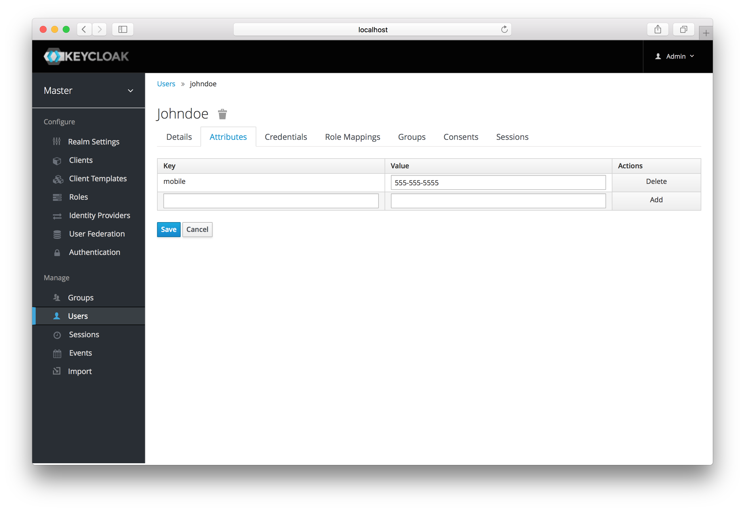 user attributes. Choose a user to manage then click on the