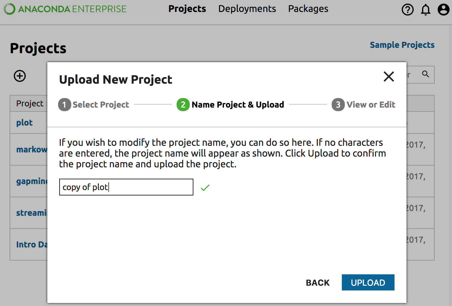 To upload the project, from the Projects page, click the top left Add (+) button and select Upload Project.