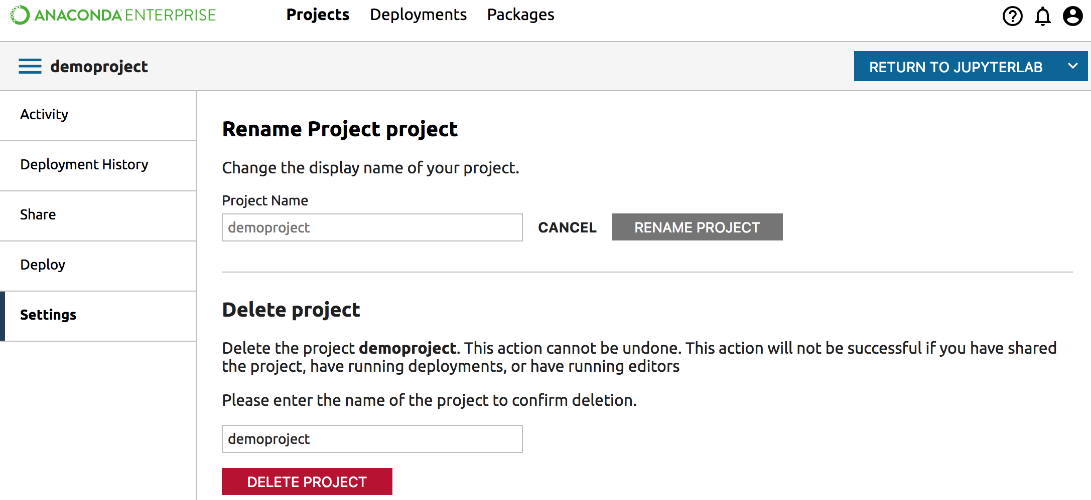 Deleting a projectΒΆ