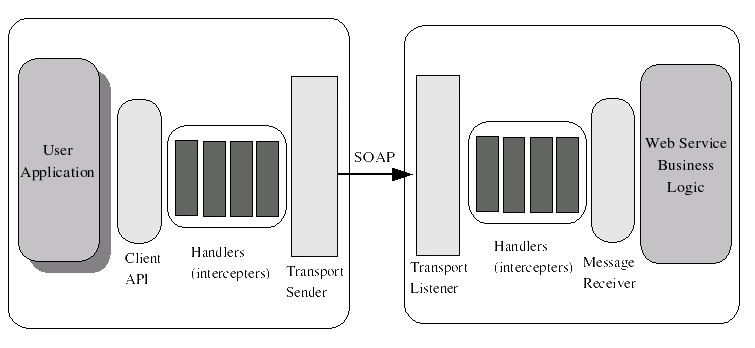 The handlers act as interceptors and they process parts of the SOAP message and provide add-on services. Usually handlers work on the SOAP headers, yet they may access or change the SOAP body as well.
