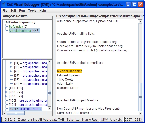 provided with the UIMA package. The CVD application will load your UIMA component using