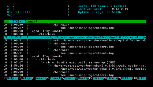 bosh sshto open a secure shell into the DEA node that is experiencing the unexpected high resource usage.Install the htop interactive process viewer. In a terminal window, run