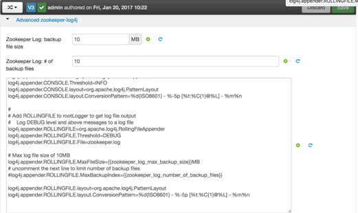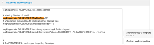2. Scroll down to Custom zookeeper-log4j.