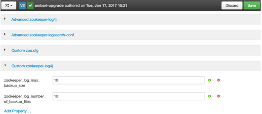 Ambari 2.5.0 provides s a simplified log rotation configuration. These changes will be made automatically during your next stack upgrade, but are not automatically made during the Ambari upgrade. After upgrading Ambari from version 2.x to 2.5.0, if you want to utilize the simplified log rotation configuration, you must update configurations for all services in your cluster, using the following steps: