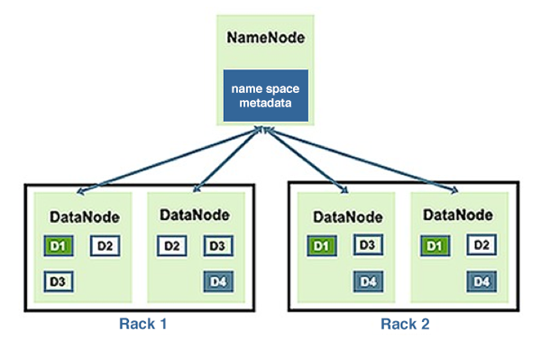 We discuss how HDFS works, and describe a typical HDFS cluster, in A Typical Hadoop Cluster.