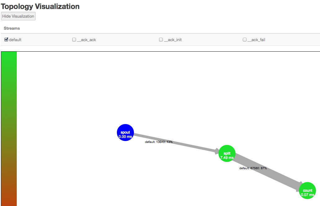 Note In addition to bolts in your topology, Storm uses its own bolts to perform background work when a topology component acknowledges that it either succeeded or failed to process a tuple. These names of these acker bolts are prefixed with an underscore in the visualization, but do not appear in the default view. You can display the component-specific data about successful acknowledgements by selecting the