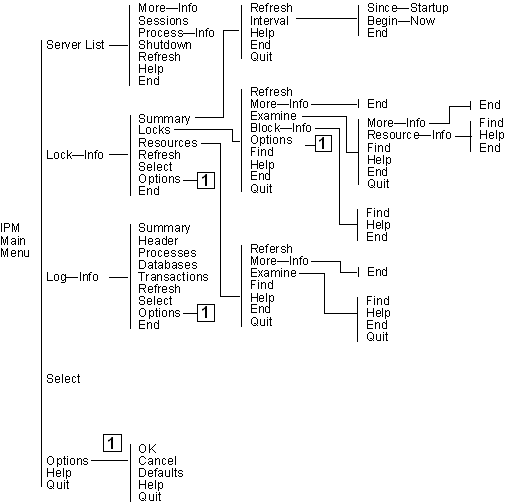 The following figure illustrates each selection that is accessible from the IPM Main Menu: