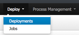 Once you get the visual notification that the project was built and deployed successfully you can go to the Deployments screen to verify that your artifact is there. In order to do that go to the top level menu called Deploy -> Deployments