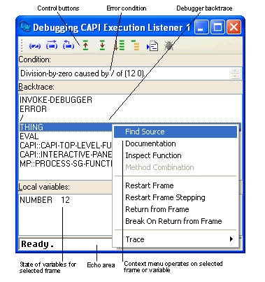 When the Frames and Arguments preference has the value Two list-panels , the Debugger appears as shown in below.