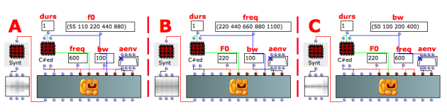 The example C spreads the bandwidth of the formant from 50 to 400 Hz.
