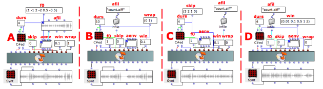 The example D realizes 4 different attack and decay times of the amplitude envelope.