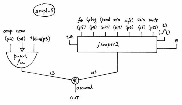 The Smpl-5 Class is a Crossfading Looper with the following controls: