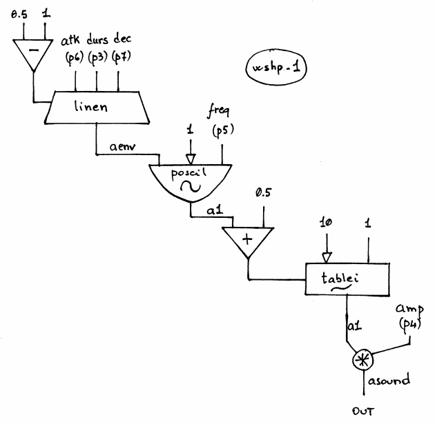 The WSHP-1 Class realizes a Wave Shaping Synthesis with the following controls:
