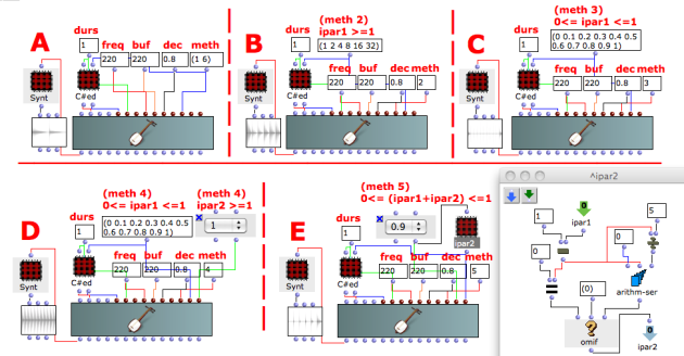 The example F fixes on the buffer size values. With increasing values the sound changes into more muffled and less brilliant.