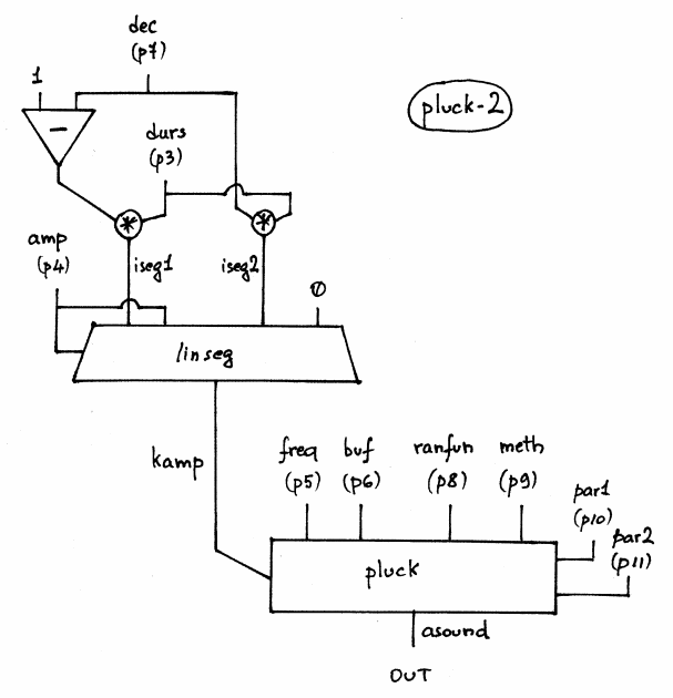 asound pluck kamp, ifq, ibuf, iranfun, imeth, ipar1, ipar2