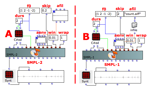 The example A employs the SMPL-2 instead the example B employs SAMPL-1 with the same given data. How you can see the difference is the relative skip time of SMPL-2.