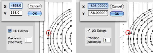 To visualize the coordinates of a point, double click on it with the mouse. These coordinates can be edited, just as in a BPC.