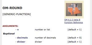 OM-ROUND rounds a number (or a list of number) to the closest integer value(s). It has also two Optional arguments :