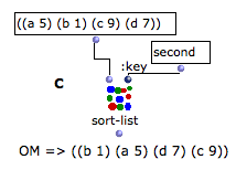 The :key argument is a potential connection used for applying a function to the elements of the input list, before they are compared with each other. Here, (C) we sort a more complex list by comparing the second element of each item. | ![]() |
