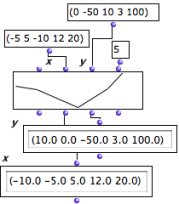 The BPF or BPC points can be set by connecting lists of values to the "x-points" and "y-points" inputs, or with the BPF/BPC editor.