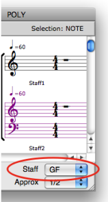 All score objects, but note objects, offer multiple staves configurations – GG, FF, GGFF etc. –.