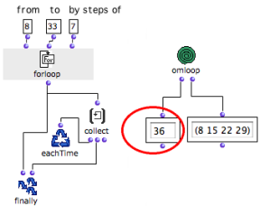 OpenMusic DocumentationOM 6.6 User Manual > Visual Programming II > Iterations: OMLoop > Iterators > For Loop