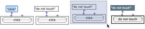 A button-box before and after the evaluation : "click" is a default text argument.