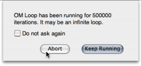![]() | An abort dialogue window pops up after a while (by default, 500 000 loops). To stop the iteration, choose |