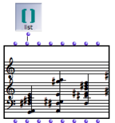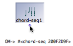 ![]() The first ouput of the chord-seq factory box is a chord-seq instance. The second output is a list of pitches. | To create an instance box, The corresponding object will appear in the patch editor. |