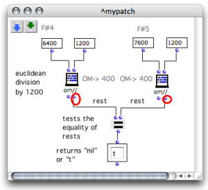 We would like to remove octaves from a list of pitches, but there is no such function in OM. To do so, we can use remove-dup with a new test function that can detect octaves in the input pitch list. For instance, the previous example has two duplicates : 6000 and 7200, a C4 and a C5.
