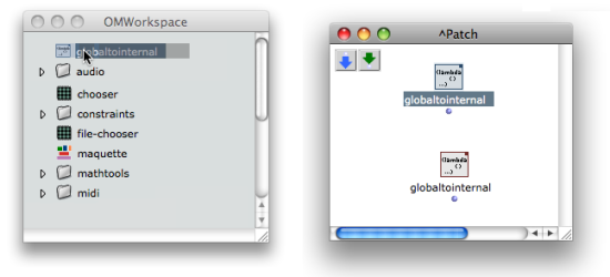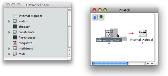 To globalize a red lisp function, drag it to the workspace. The function will be converted automatically.