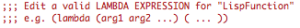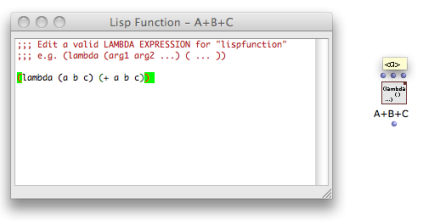 Double click a Lisp Function box to edit its contents. The window that opens is similar to a Lisp editor.