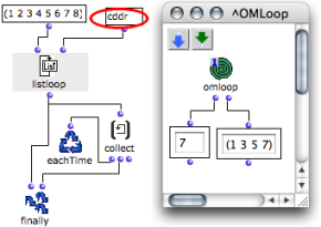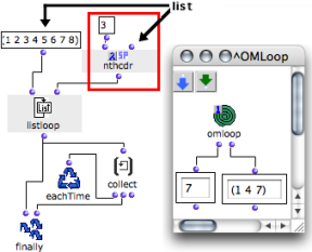 OpenMusic DocumentationOM 6.6 User Manual > Visual Programming II > Iterations: OMLoop > Iterators > List Loop