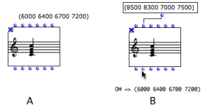 • (A) Here, a chord is edited as a C4 triad and is locked (A).