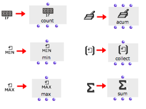 All accumulators but acum have a single input : this input is used for collecting the successive values during a loop.