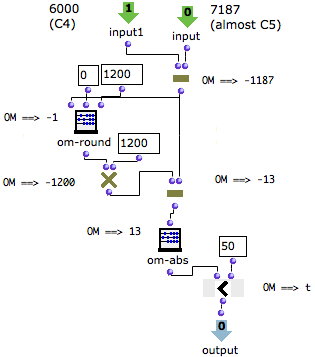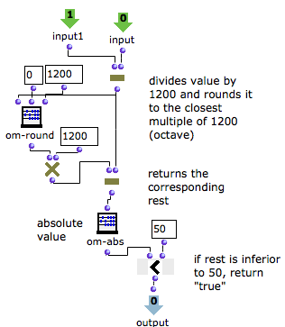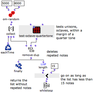 3. The resulting list is returned to remove-dup, which removes equal values and octaves, give or take a quarter tone.
