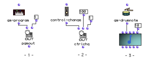 In order to make Midi objects and functions easier to set, some "menu-functions" allow to choose parameters with their standard names (according to General MIDI specifications) internally converted into corresponding integer values.
