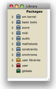 Contains functions or classes components belonging to a common category of programming items. Packages are provided at the installation of OM, but the can also be loaded dynamically or added by the user.