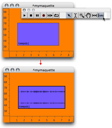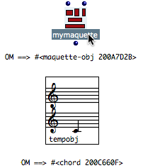 The value of a maquette is the musical object, or container, yielded when the maquette is evaluated. Very basically, this musical object is actually what is played by the player, just as with a sequencer.