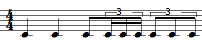 This one measure tree has one group – two quarter notes – , one group with a sub group – one eighth note and a sixteenth notes triplet, and a last group – a quintuplet.