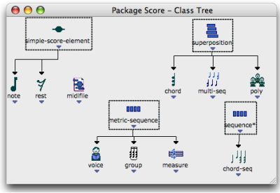 For instance, the Score package contains classes that are literally dedicated to the score domain, such as chords, notes, polyphonies, and functions that can perform operations upon these classes. These packages and their content are "protected" and cannot be modified by the user.