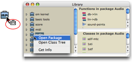 Ctrl / right click on the suitcase and choose Open Package.The window extends to display two side panels, respectively containing the package's functions and classes.