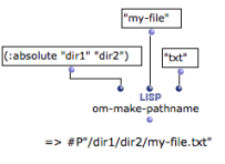 The Lisp pathname functions can be used in OM as any other Lisp functions. The om-make-pathname is an additional facility provided by OM to build pathnames.