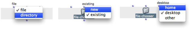The file-chooser box allows to select a file or folder via a pop up window.