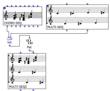 2. connect the second output of the multi-seq , and the "self" output or the chord-seq to list .
