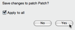 The saving dialogue window asks if unsaved items have to be saved. The apply to all option allows to apply your choice to the whole content of the folder or workspace .