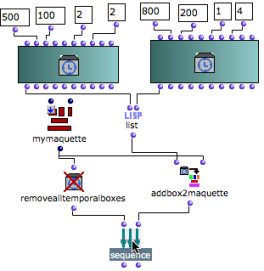(sequence (removealltemporalboxes maquette) (addbox2maquette maquette temporalboxes) )