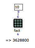 This recursive patch implements a preliminary version of the factorial function. It is called inside itself and calculates fact(n) = n x fact(n-1). This function has no termination condition. If it is called in its current state, it will never end. |