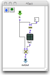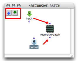 If this patch has inputs and outputs, they will also appear on the patch box, so that the patch can be "called from inside itself". | ![]() |